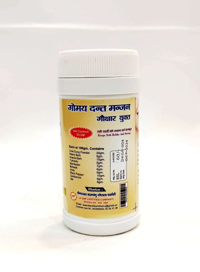 गोमय दन्त मंजन एक प्राकृतिक हर्बल टूथ पाउडर है जो दाँतों की चमक बढ़ाता है, मसूड़ों को मजबूत करता है और मुंह की दुर्गंध को दूर करता है। यह गोमय (गौमूत्र आधारित) तत्वों से निर्मित है जो दंत रोगों से रक्षा करता है।
