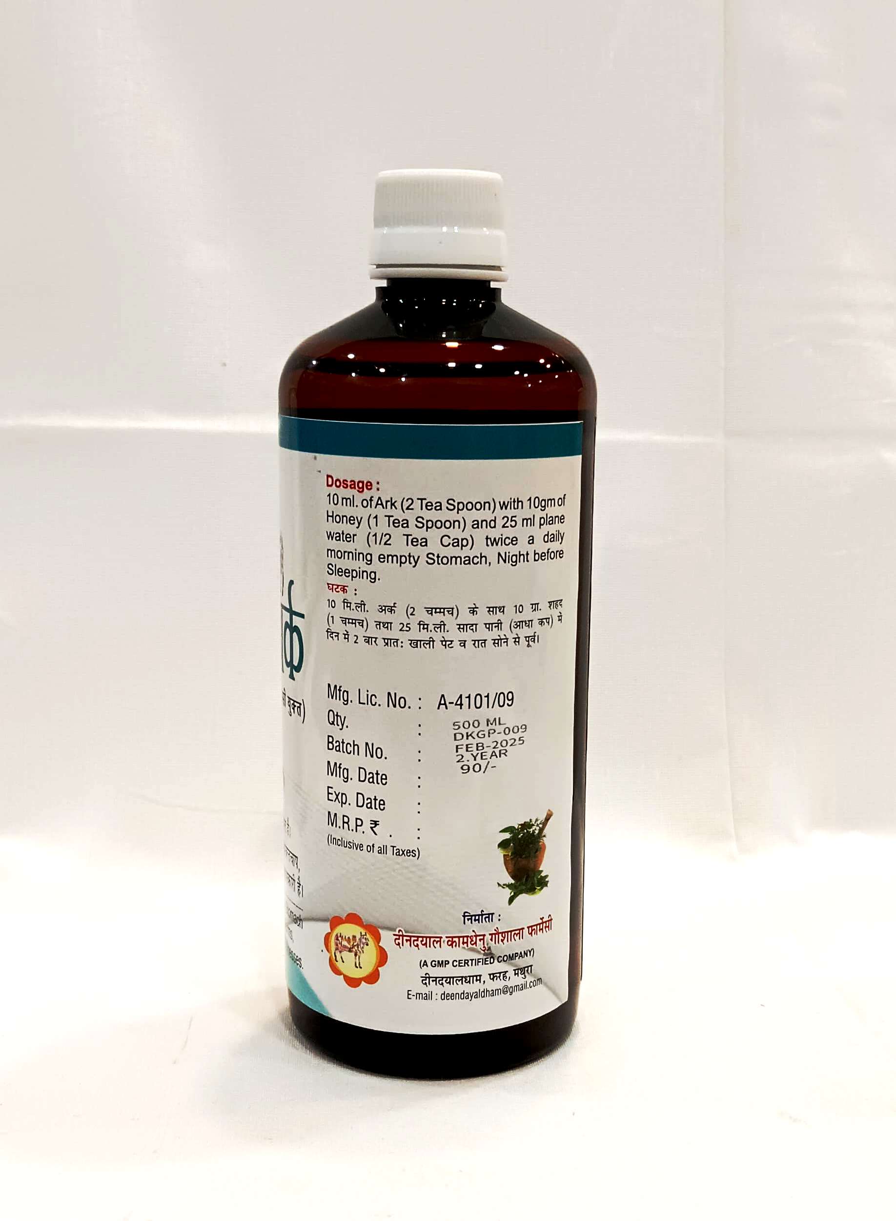 प्रतिदिन सुबह खाली पेट 10 से 15 मिली अर्क को बराबर मात्रा में पानी में मिलाकर लें (या वैद्य की सलाह अनुसार)।